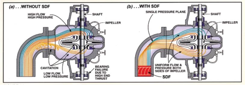 Custom installation of SDF on Elbow prior to pump resulted in triplihg life of pump to 18 months,