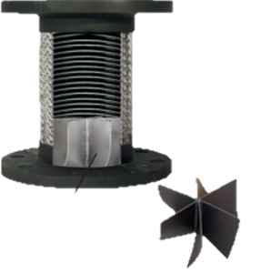 This device does dual duty as both flexible coupler and turbulence mitigation before flow meters, valves and other applications that need it.