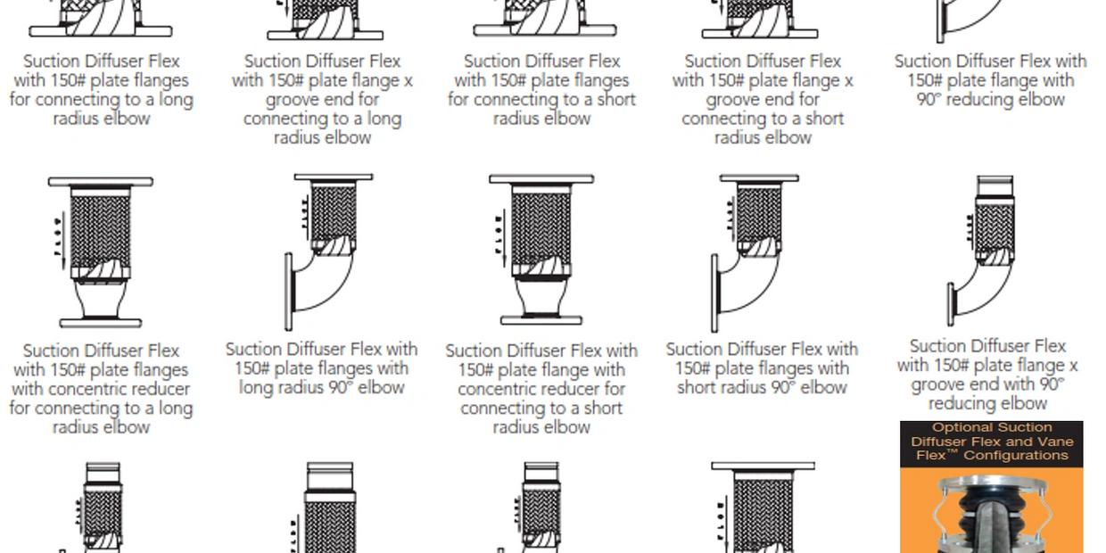 Works as Flow Conditioner and Flexible Connector to isolate piping from pump.