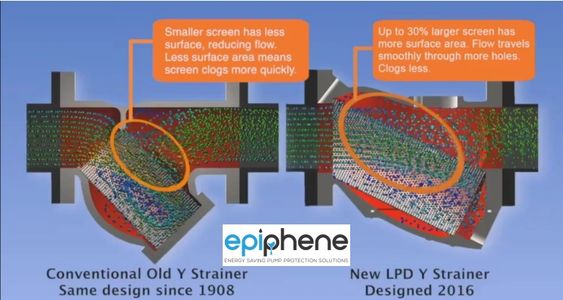 Low Pressure Differential Strainers offer a huge positive impact on energy savings, pump discharge head, and increasing flow rate. Positive impact on designs in motor, pump and strainer sizing.